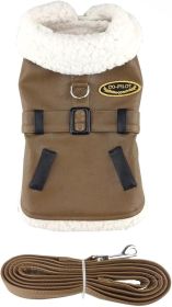 Brown and Black Faux Leather Bomber Dog Coat Harness and Leash (Option: X-Small)