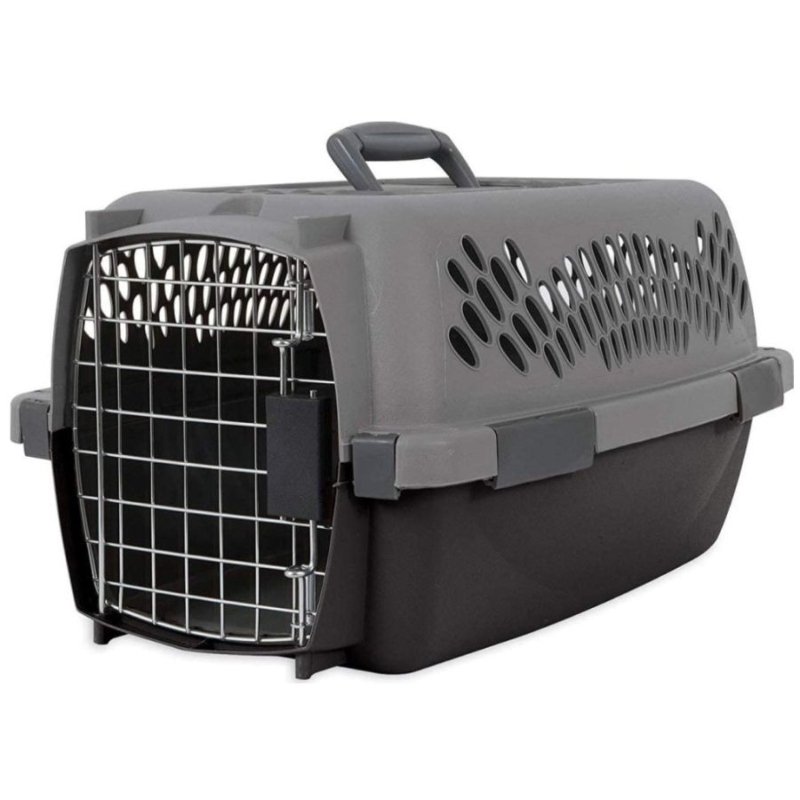 This traditional pet porter features durable wire door to keep your dog securely contained, made of heavy duty plastic shells with eco-friendly plastic. Also side & back ventilation holes to promote healthy air flow. Meets most airline requirements.