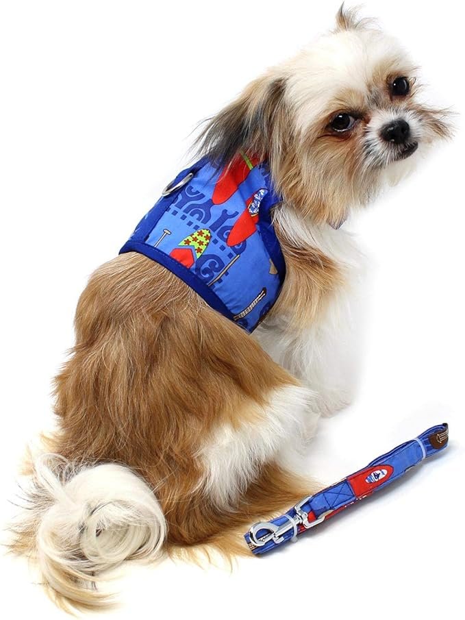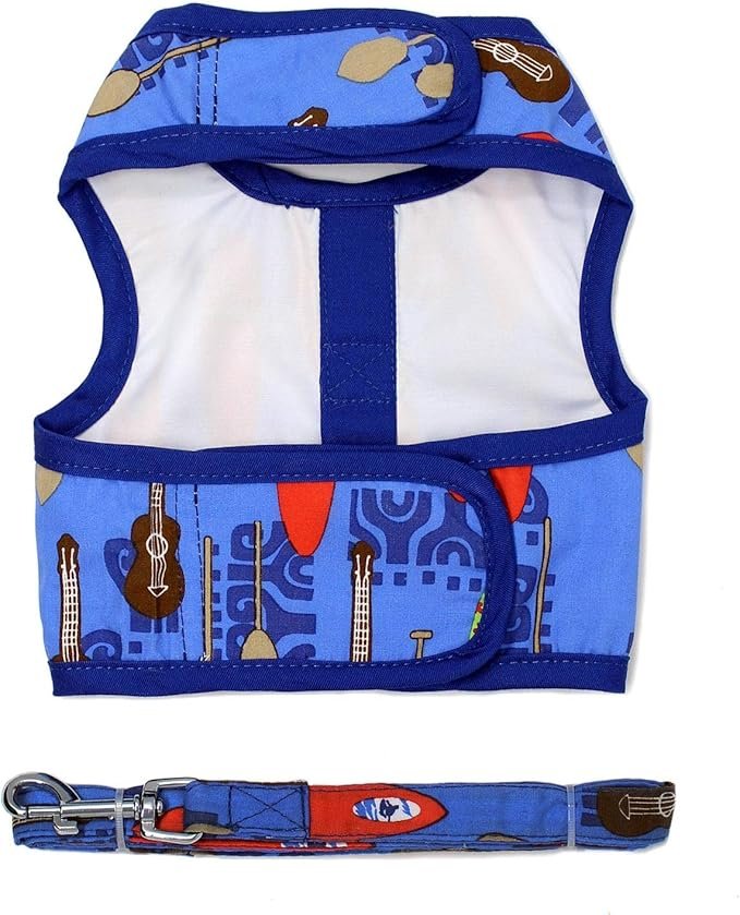 Fabric Dog Harness with Leash - Ukuleles and Surfboards Fabric Dog Harness with Leash - Ukuleles and Surfboards