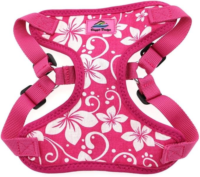 Wrap and Snap Choke Free Dog Harness by Doggie Design - Pink Hibiscus Wrap and Snap Choke Free Dog Harness by Doggie Design - Pink Hibiscus